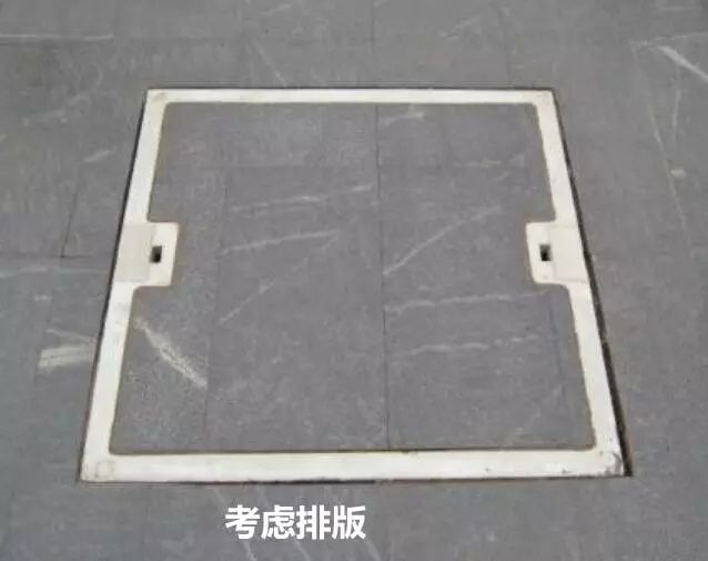 ▲裝面層上的各類井蓋在處理時應提前與鋪裝排版模式進行核對,確保不破壞整體鋪裝效果