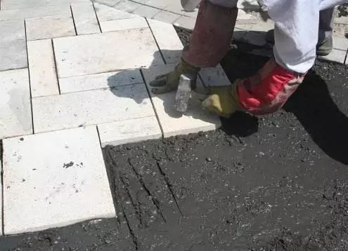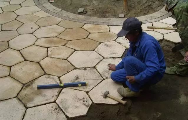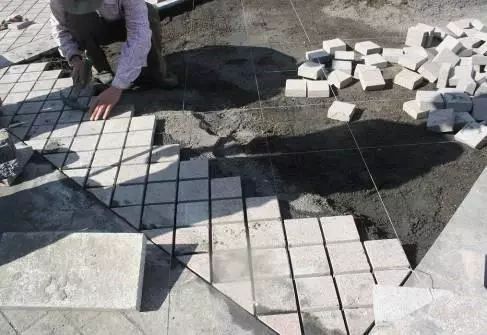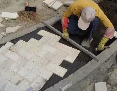 園林道路石材鋪裝石雕欄桿施工全過程,準備工作→基層處理→彈線→試排→刷水泥漿及鋪砂漿結合層→鋪貼石材→灌縫、擦縫→成品保護