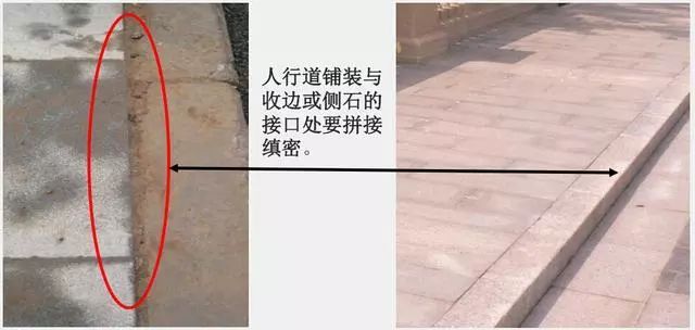 ▲在瀝青鋪設前應對平石收邊的外口進行仔細切齊處理,以保證瀝青鋪設后接口處的順直,并且保證瀝青完成面與平石的標高一致。