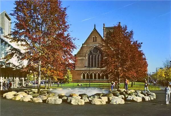 哈佛大學(xué)唐納噴泉是彼得沃爾早期的作品,噴泉位于校園內(nèi)一個交叉路口,由159塊花崗巖不規(guī)則排列組成直徑約為 18.3m的圓形石陣,石陣的中央是一座霧噴泉。