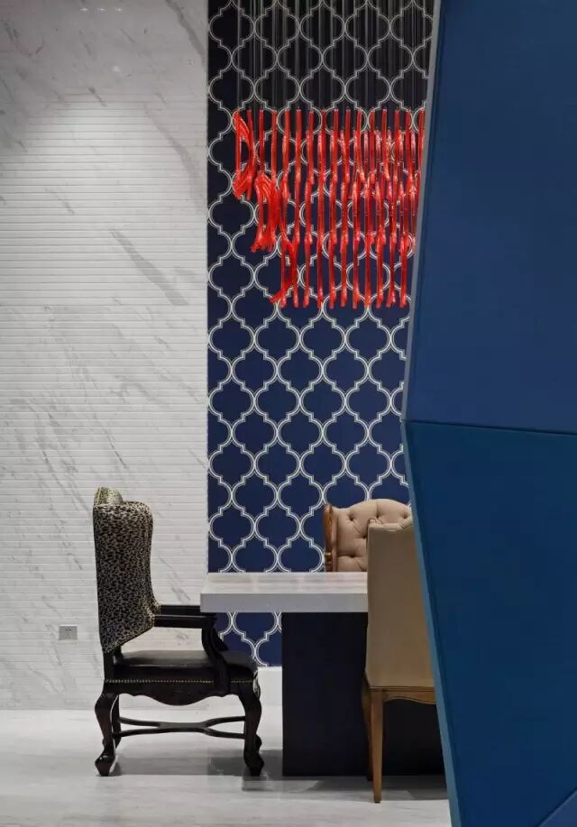 總的來說,設計師在這里想要表現(xiàn)的是一種超越單純的商業(yè)化而存在的空間。和傳統(tǒng)軟裝店相比,這個項目顯得不那么“傳統(tǒng)”——沒有大規(guī)模出樣,沒有大范圍展品,卻濃墨重彩地刻畫空間的表情。因為墻紙、窗簾、布藝都只是一般意義上的具象,設計師希望通過一種有力度的、藝術化的表現(xiàn)手法,賦予空間以質(zhì)感,從而將大理石提升到設計與藝術互相融合的層次上來,給顧客耳目一新的體驗,而不是慣性思維中已經(jīng)被定式了的軟裝店印象。